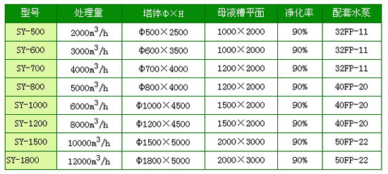 SY-1型廢氣凈化塔處型規(guī)格及技術(shù)指表: